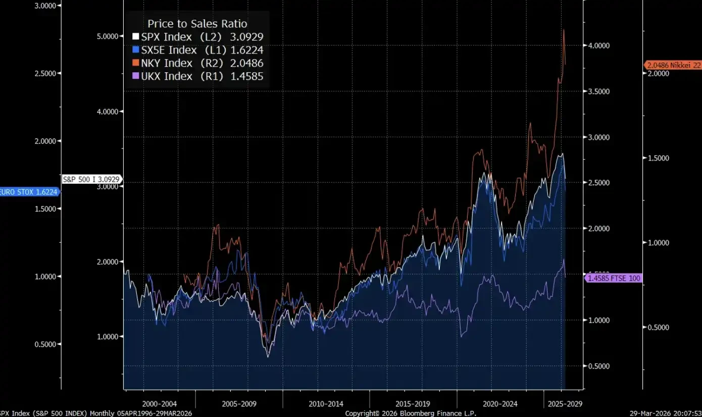 全球股市市銷率(P/S)普遍上行,部分已觸及歷史高位,正映射此一選擇:股價上漲驅力,日益來自流動性與政策預期,而非盈利改善——市場已在為「避免衰退、容忍資產上漲」的集體政策取向定價。
