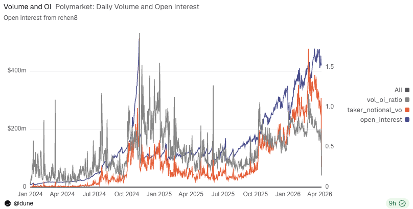 Polymarket USD 的推出,直接打通了全球最成熟、最暴利的穩定幣盈利路徑——儲備資產收益。根據 Dune 數據,平台未平倉合約價值(OI)已逾 4 億美元;Defillama 創始人 0xngmi 更指出,用戶錢包中約有 12.5 億美元資金可被 Polymarket USD 機制覆蓋。若將底層 USDC 投入 Circle 機構賬戶或美國國債協議,按年化 4–5% 無風險利率計算,Polymarket 每年穩健收益可達數千萬美元。