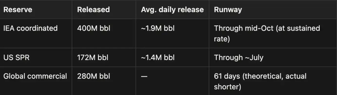 但這些數據存在重大誤導:美國戰略石油儲備(SPR)物理釋放上限約為200萬桶/日,遠低於紙面宣稱的「每日百萬桶級別」支援能力。