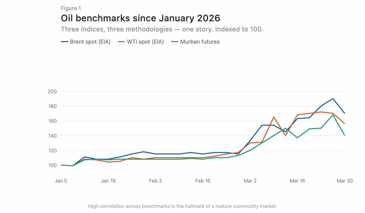 圖注:布倫特與 WTI 原油價格走勢對比,方向高度一致