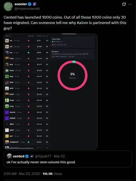 因此,愈來愈多聲音指出:Cented 這類玩家,已成為 Meme 币生態的「癌症」。