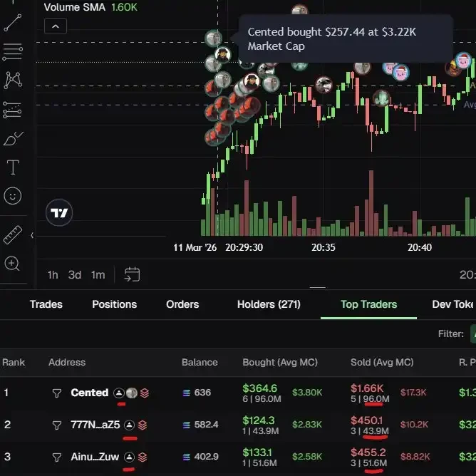 包括 Cented 在內的「跟單收割型 KOL」,早已熟練運用主錢包搭配數十乃至上百個小錢包,在代幣市值僅數千美元時即「捆綁建倉」,並於市值達 10 萬美元(甚至更低)時全數拋售離場。