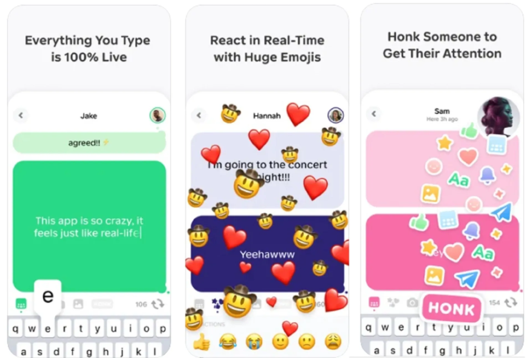 ▸ 無「發送」按鈕:文字逐字即時顯示,對方可實時看到你輸入、修改、刪除的全過程,宛如「聊天直播」;