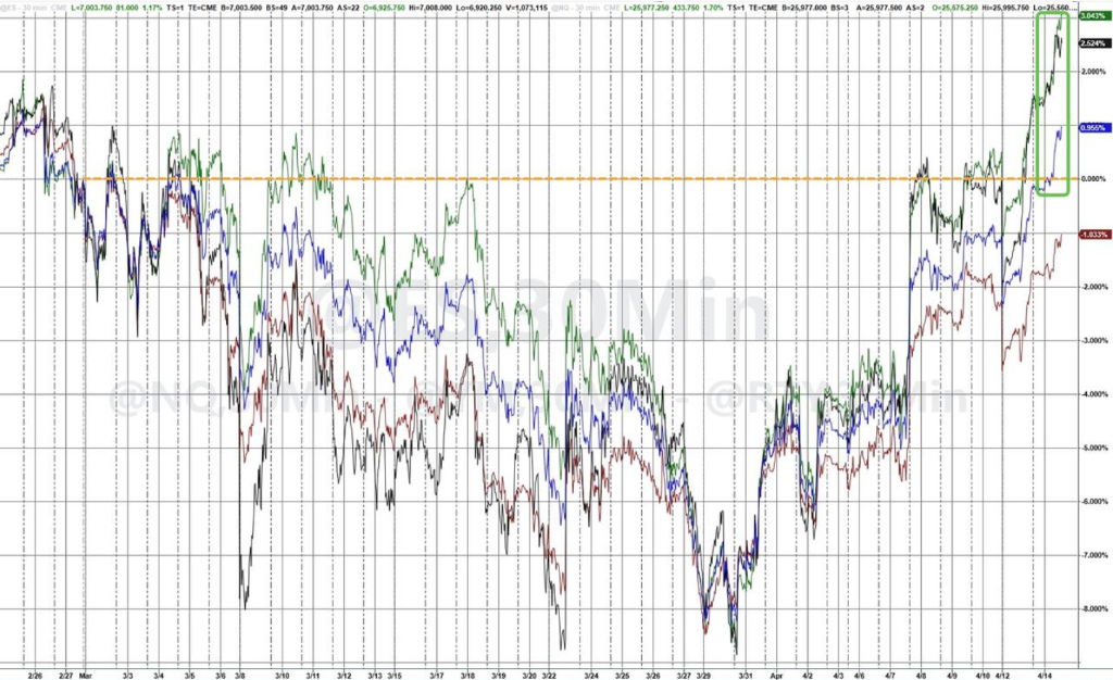 對於此波美股強勁反彈,一位資深股票交易員直言:「資金流向呈單向性……CTA基金、客戶端,所有人此前均大幅低配風險資產,如今正集體追漲。」